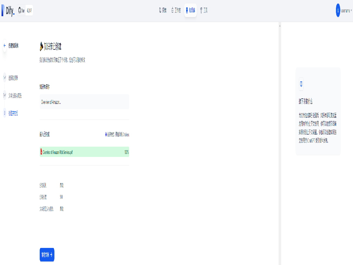 点击界面上方的 知识库 标签,并创建知识库。