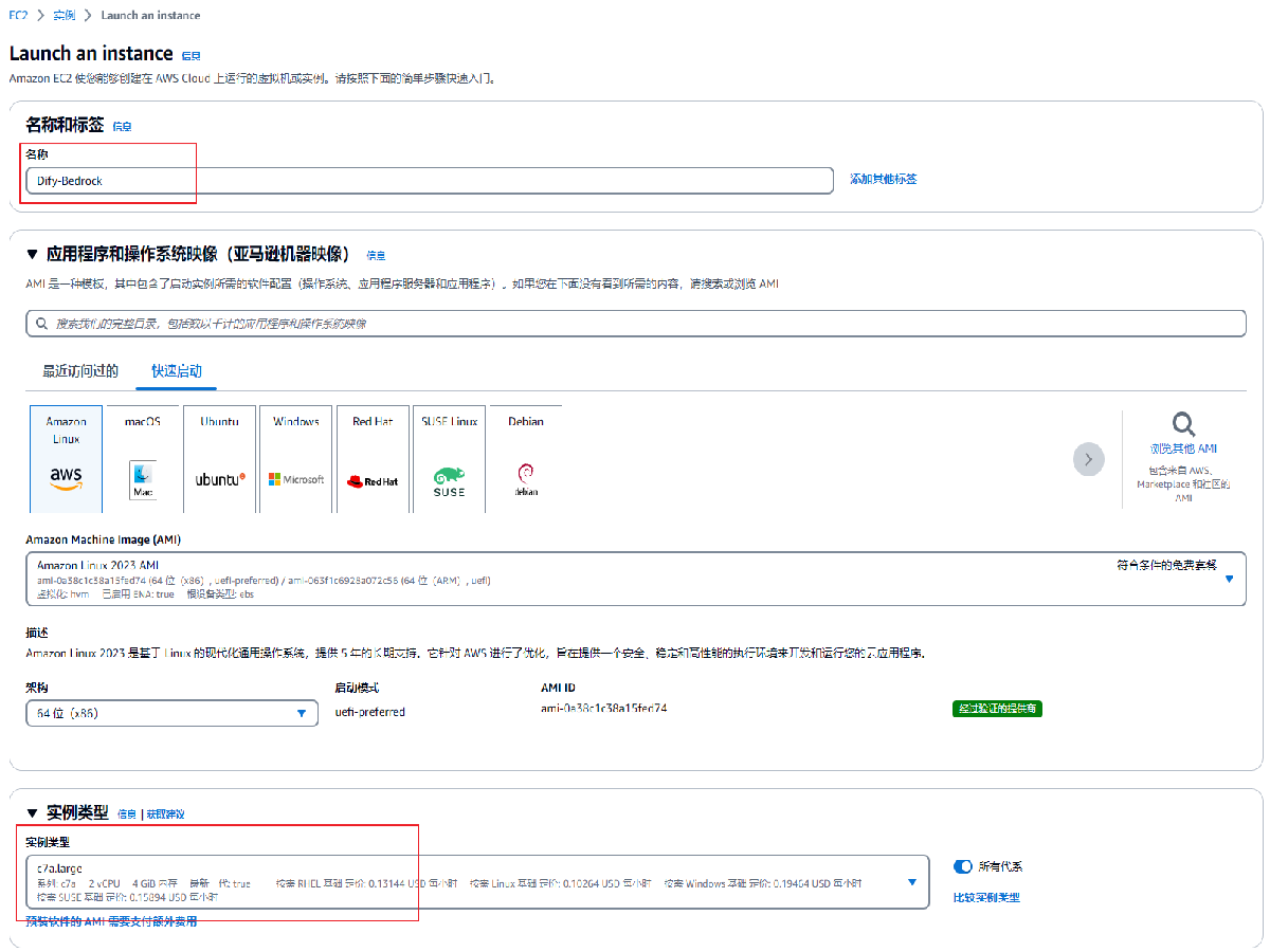 名称: 输入此实例的名称,示意图中为“Dify-Bedrock”