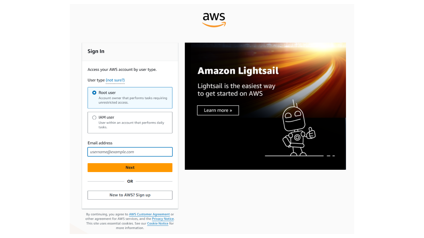 全部打开首先,您需要登录亚马逊云科技官网:aws.amazon.com注册一个新用户,作为您的根账户。账户注册过程请参见相关官方教程。