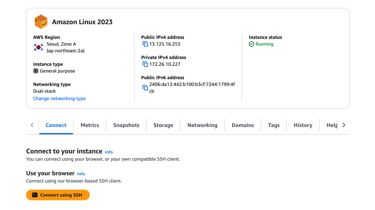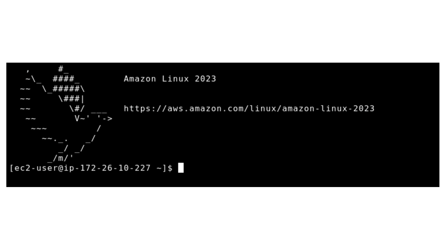 通过 SSH 连接,在控制台页面打开运行的是 Amazon Linux 2023 终端窗口。
