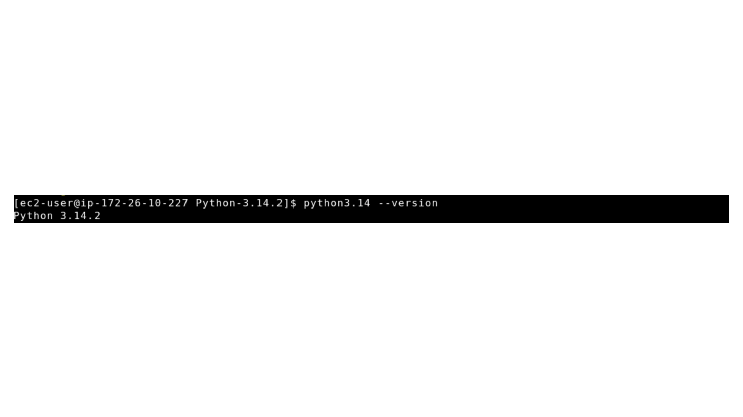 全部打开由于配置了Amazon Linux 2023,因此,在连接打开的SSH终端中,须执行以下命令,从源代码安装Python最新版 3.14: