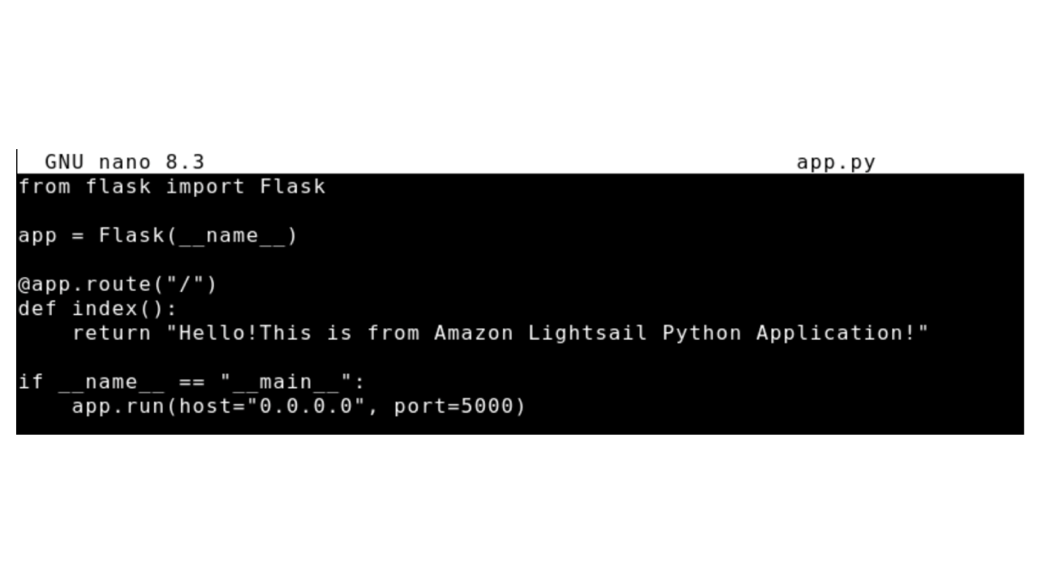 全部打开准备好 Python 应用程序代码(Flask 驱动的 Web 应用程序);并在 SSH 终端中,执行文本编辑命令: