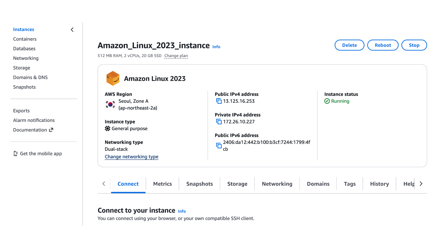 全部打开返回 Amazon Lightsail 控制台,打开创建的实例。