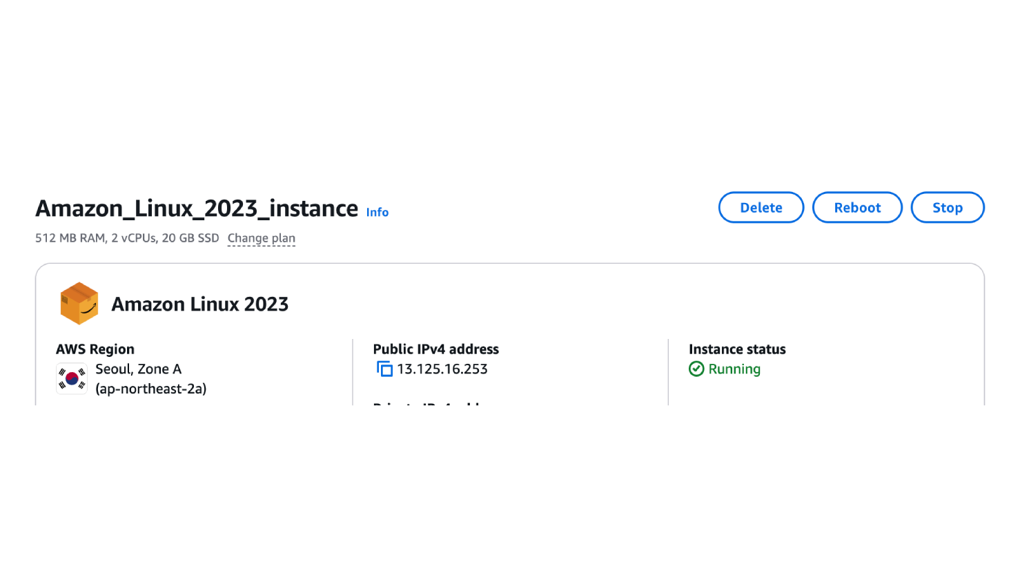 全部打开在 Amazon_Linux_2023_instance 创建的实例中,显示有 Public IPv4 address (即通常所说的IP地址),加上配置的防火墙规则(包括 TCP 协议和端口号 5000)。