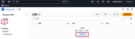 - 在 SNS 控制台的左侧导航栏中,点击“主题 (Topics)”。