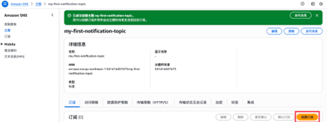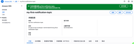 - 在左侧导航栏回到“主题 (Topics)”列表,点击我们创建的 my-first-notification-topic。