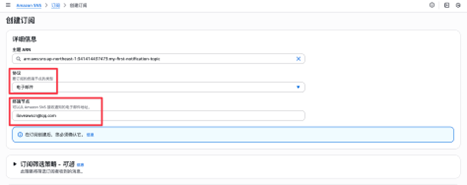 - 主题 ARN:这个字段会自动填充,无需修改。