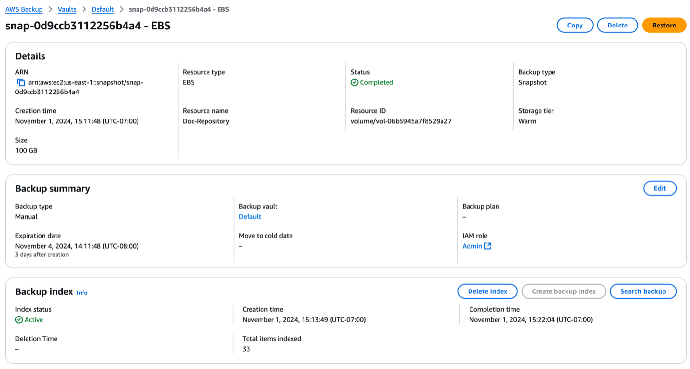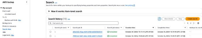 全部打开使用 AWS Backup 的 Amazon EBS 快照和 Amazon S3 备份搜索和项级恢复功能