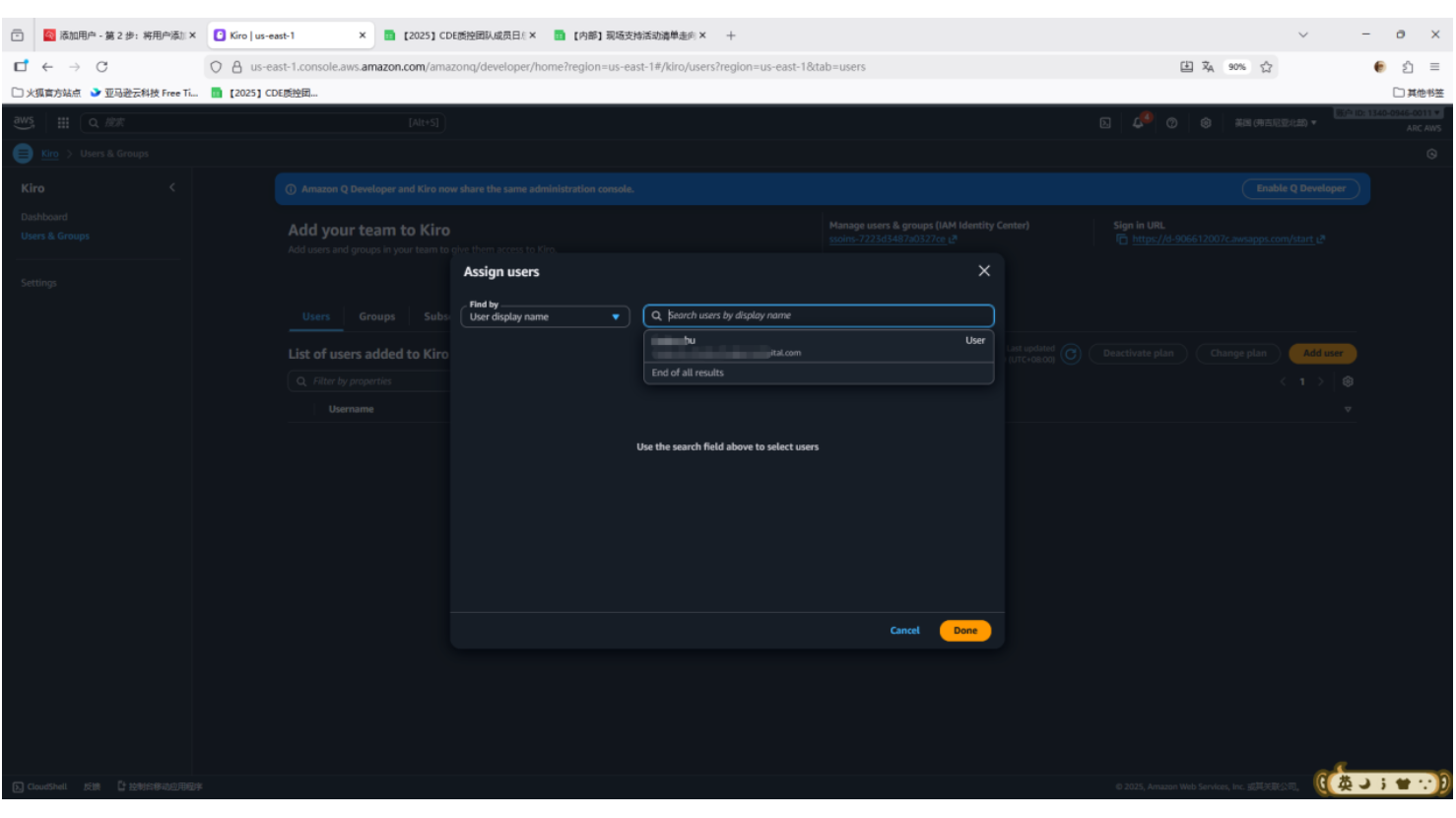 - AWS 权限:作为 Kiro 的管理员 ,您必须拥有访问 kiro 控制台的权限,才能够订阅和管理 kiro 用户;