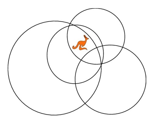首先,我们使用以下图片,并给出如下问题作为 Prompt:“The kangaroo is inside how many circles?”(袋鼠被多少个圆圈包围着?)