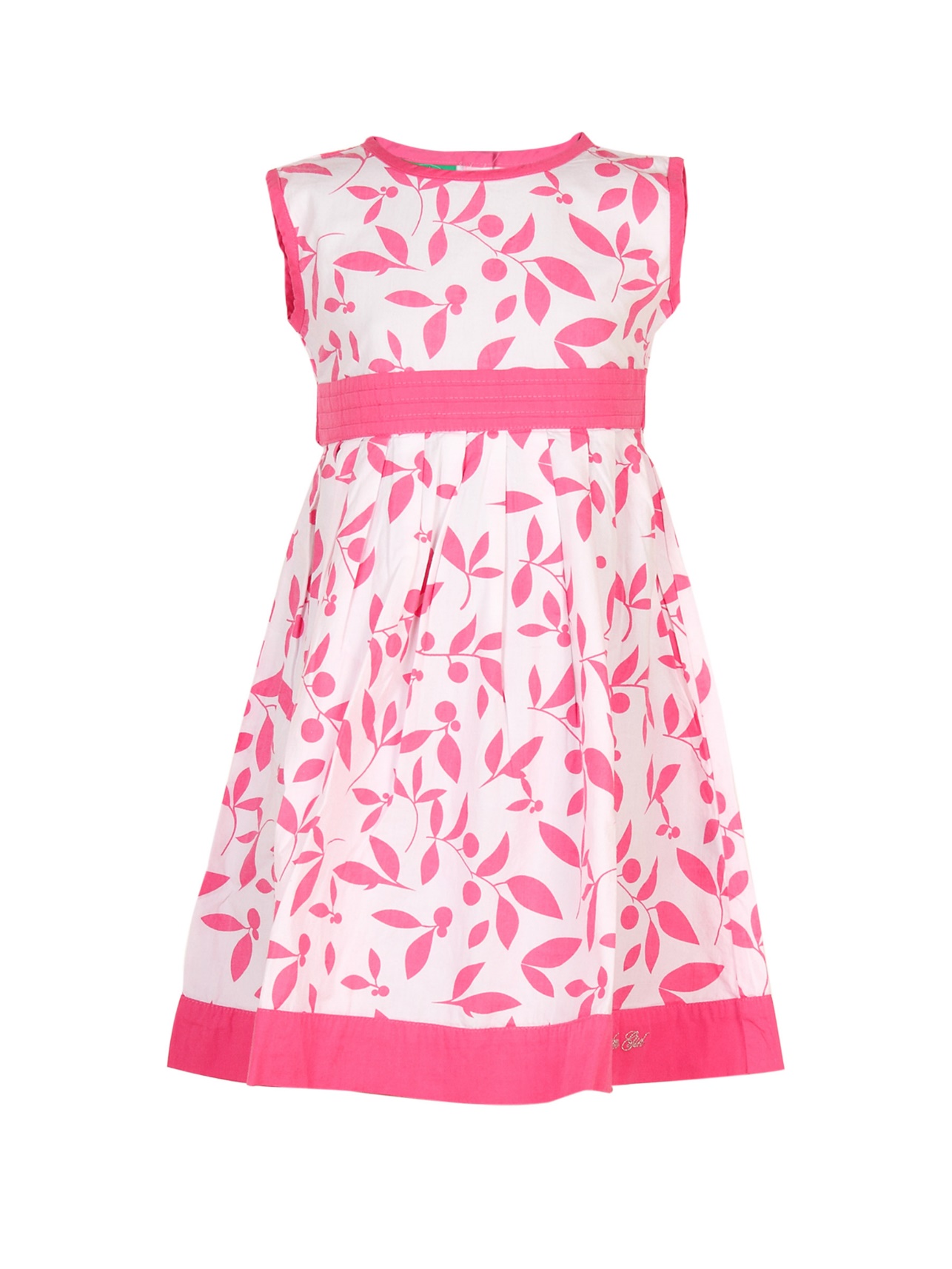 "description": "A sleeveless dress with a pink floral pattern and a pink trim at the bottom",