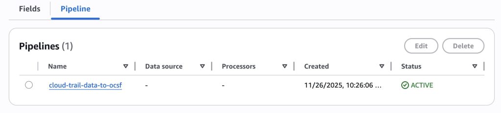 Sie haben auch die Möglichkeit, Pipelines über die neue Ingestion-Erfahrung in CloudWatch zu erstellen. Um mehr darüber zu erfahren, wie Sie Pipelines einrichten und verwalten, besuchen Sie Pipelines im Amazon CloudWatch Logs Benutzerhandbuch.