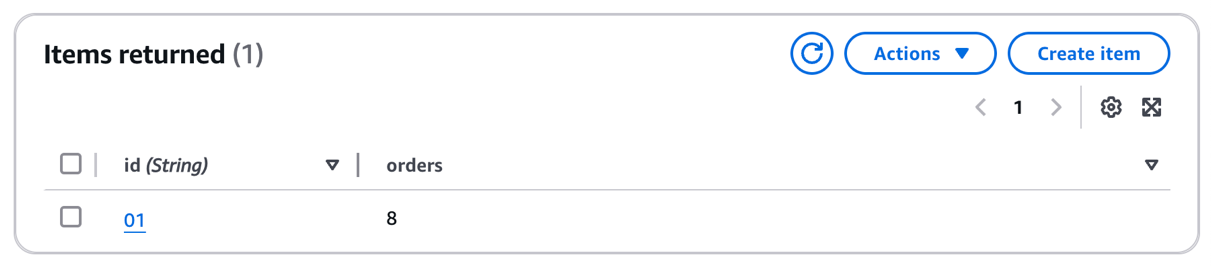 # Update the DynamoDB table with the new number of orders