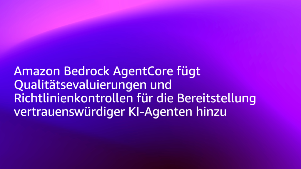 Amazon Bedrock AgentCore fügt Qualitätsevaluierungen und Richtlinienkontrollen für die Bereitstellung vertrauenswürdiger KI-Agenten hinzu