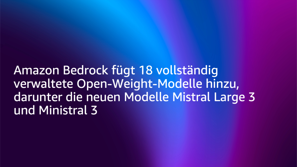 Amazon Bedrock fügt 18 vollständig verwaltete Open-Weight-Modelle hinzu, darunter die neuen Modelle Mistral Large 3 und Ministral 3