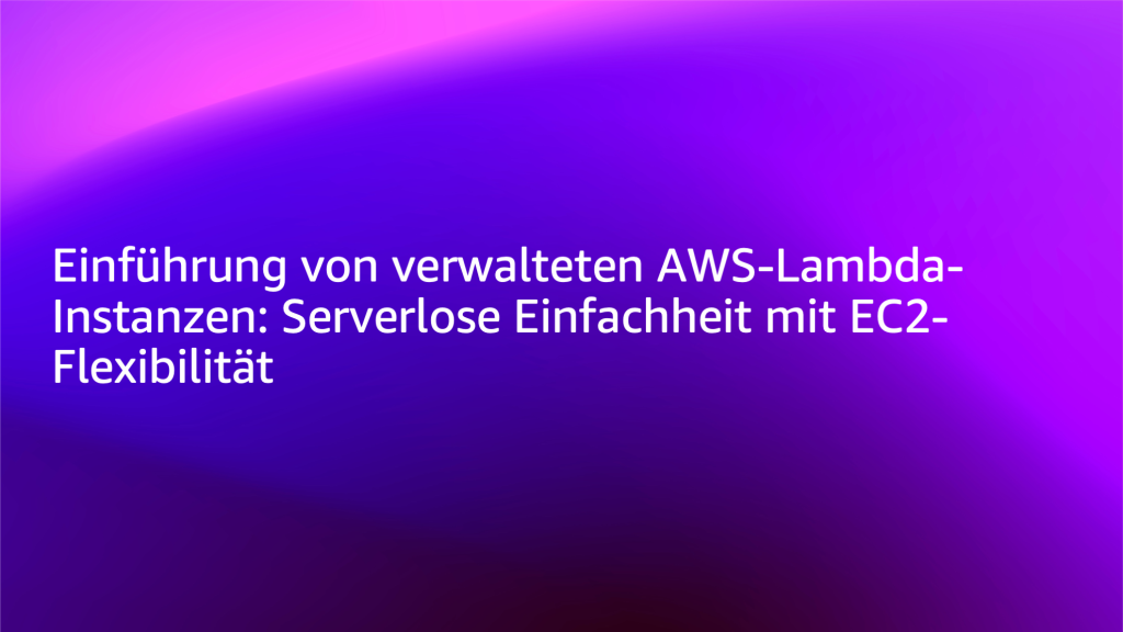 Author: Micah Walter, Übersetzung: Philip Gutberlet Heute kündigen wir die Einführung verwalteter AWS-Lambda-Instanzen an, eine neue Funktion, mit der Sie AWS-Lambda-Funktionen auf der Rechenkapazität Ihrer Amazon Elastic Compute Cloud (Amazon EC2) ausführen können, während Sie die operative Einfachheit von Serverless beibehalten. Diese Erweiterung adressiert ein wichtiges Kundenbedürfnis: Zugriff auf spezialisierte Rechenleistungs-Optionen und Kostenoptimierung für […]