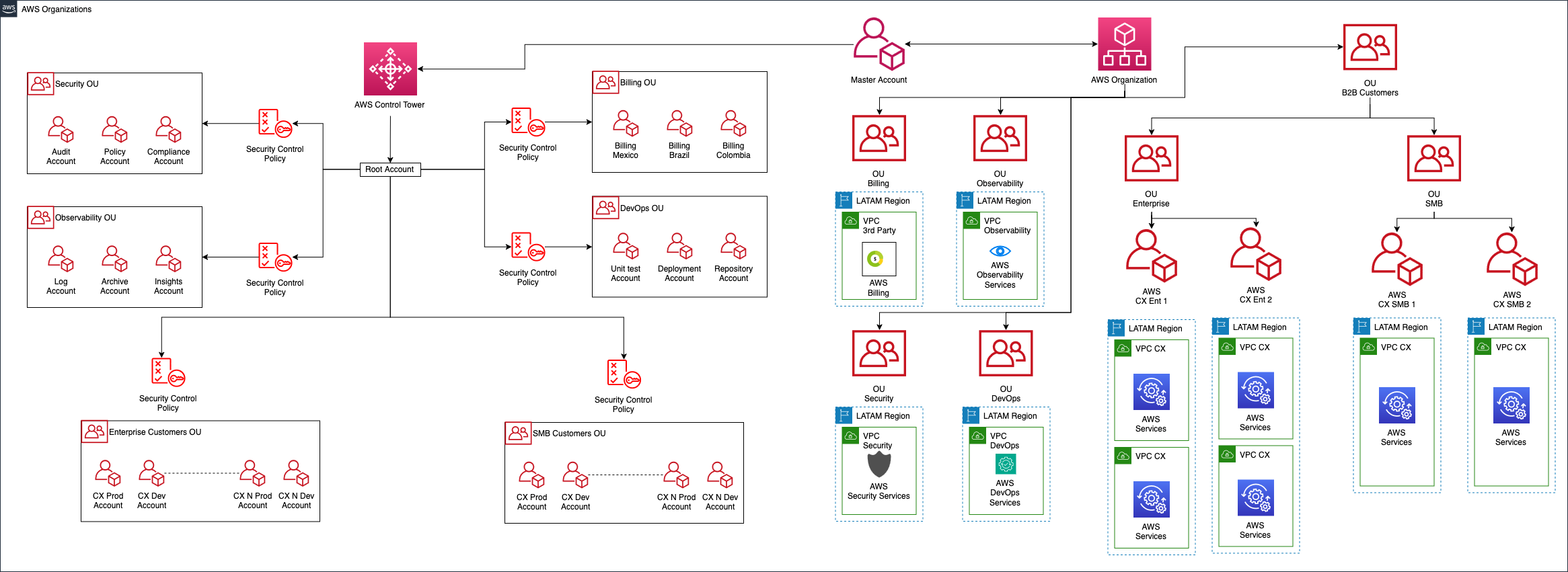 - AWS Organizations + Control Tower: Para gestión de cuentas múltiples
