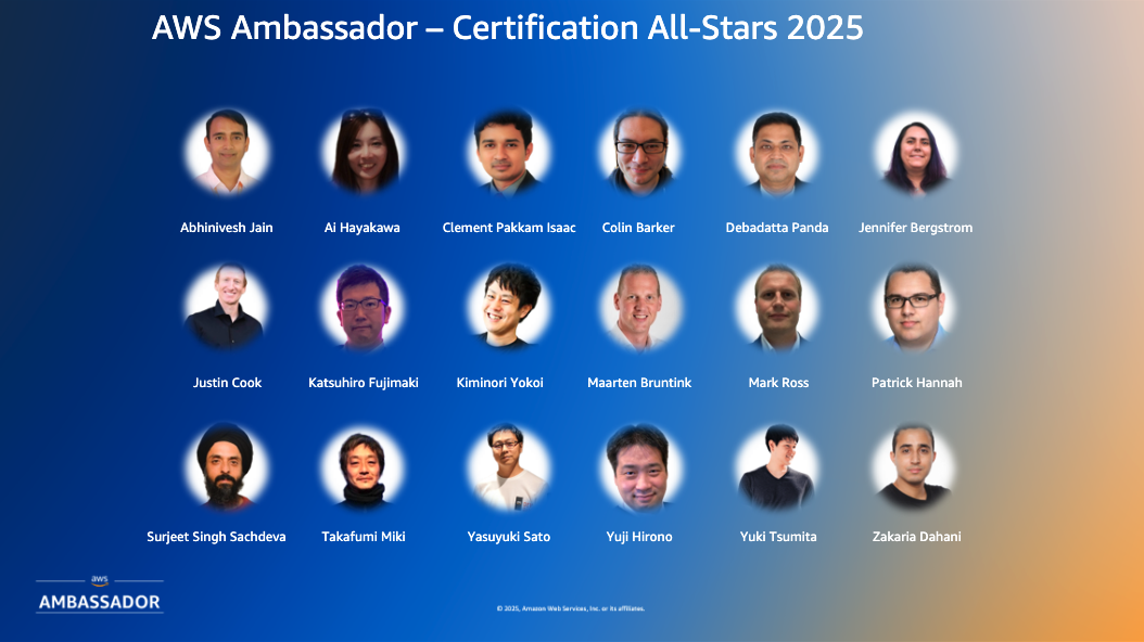At the annual AWS Ambassador Global Summit in June, we kicked off a 3-day event in Seattle with 91 Ambassadors from 65 partners across 20 countries. All of our AWS Ambassadors were eager to get together once more to dive deep on AWS topics and interact with executives from across AWS and the AWS Partner Organization. We were honoured to recognize this year’s Top AWS Ambassadors for their outstanding performance and exemplary business impact and thought leadership. Following are the 2025 AWS Ambassador Top Awards recipients.