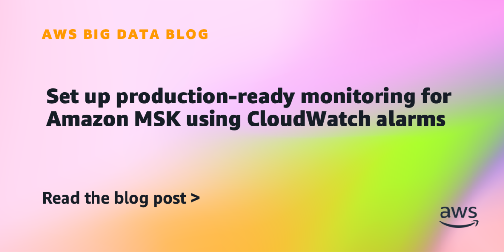 In this post, I show you how to implement effective monitoring for your Kafka clusters using Amazon MSK and Amazon CloudWatch. You’ll learn how to track critical metrics like broker health, resource utilization, and consumer lag, and set up automated alerts to prevent operational issues.