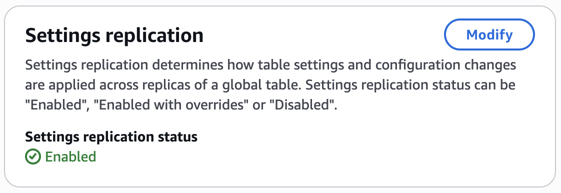 - Set the table’s GlobalTableSettingsReplication: ENABLED.