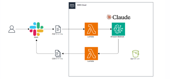 Amazon Bedrock + Claude を採用したポイントとして、Claude の高度な文書理解能力が挙げられます。契約書は法的な専門用語を含む複雑な文書であり、テナント様ごとにフォーマットが異なりますが、Claude は PDF などの非構造化データから文脈を理解した上で必要な情報を正確に抽出できます。また、AWS Lambda を中心としたサーバーレスアーキテクチャにより、非エンジニアが中心のチームでもインフラ管理に煩わされることなくシステムを運用できる点、そして日常的に使用している Slack との統合が容易で導入時の移行障壁を低く抑えられる点も、AWS を選択された理由です。