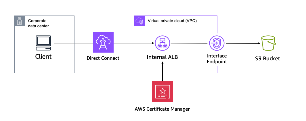 S3 には Gateway Endpoint と Interface Endpoint の 2 種類の VPC エンドポイントが存在します。この構成では、Interface Endpoint のプライベート IP アドレスを ALB のターゲットとして登録します。