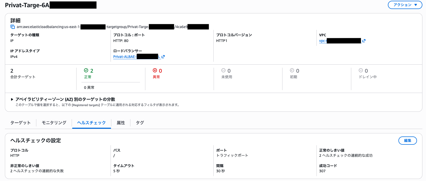 これを踏まえ、Target Group のヘルスチェックの設定例は下記のようになります。