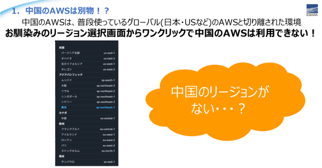 参加者から、次回もより運用にフォーカスした内容が聞きたい、AWSサービスを有効活用してコスト最適化を実現したいとの声をいただきました。 - LT③:「中国におけるAWS利用について」