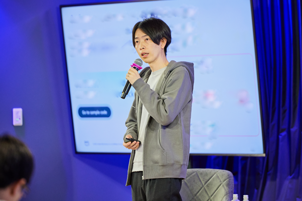 カラクリ株式会社 R&D team Lead の武藤 健介 氏は、カスタマーサポート領域における LLM 開発の取り組みを発表しました。AWS Trainium を駆使し、コストを抑えながら大規模モデルを開発。特に、API 連携なしに人間のように PC 画面を視覚的に操作する Computer-Using Agent の開発に注力しています。セッション内では、顧客管理システムを自動で操作してメール返信するデモを披露しました。