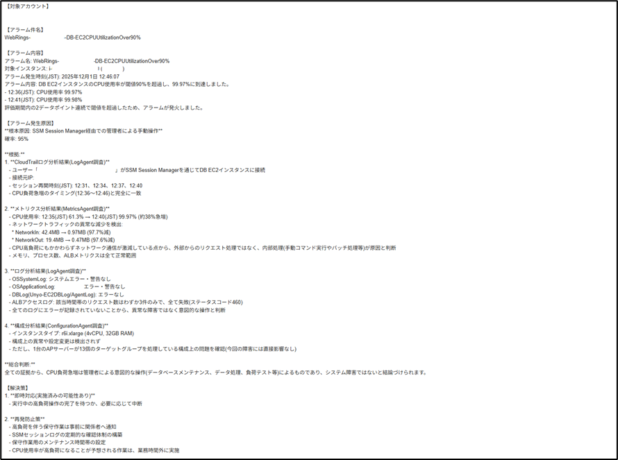 これにより、運用担当者はアラーム発生と同時にそのアラームに対する分析結果を受け取れるようになりました。