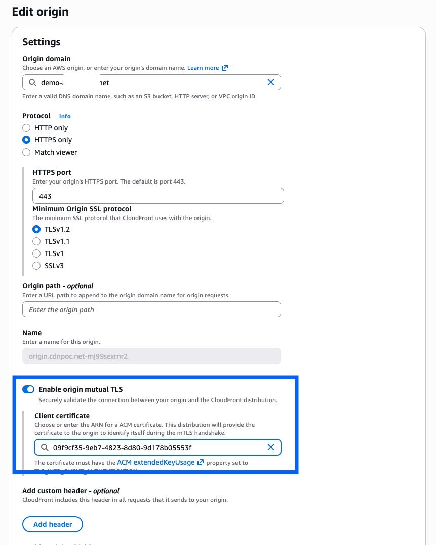 ステップ 2:オリジン設定で mTLS を有効化