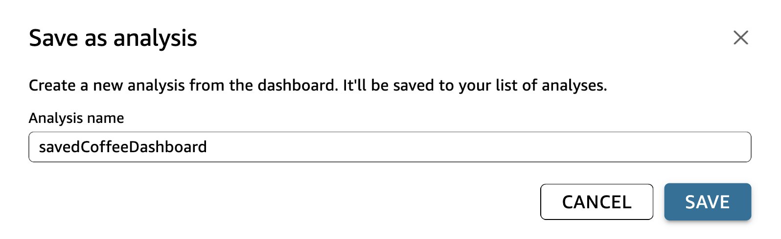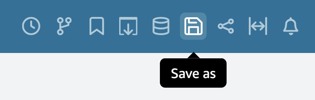 公開後、ダッシュボードはさらなる変更のために分析として 保存 できます。作成者は、次のスクリーンショットに示すように、「名前を付けて保存」オプション(フロッピーディスクアイコン)を使用して、利用中のダッシュボードから新しい分析を作成できます。