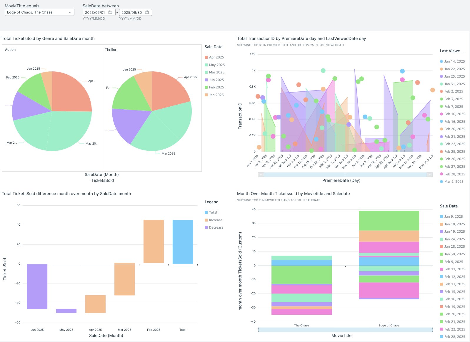 を使用して構築された、映画チケット販売ダッシュボードの例です。