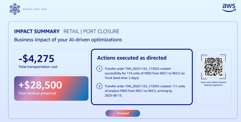 サプライチェーンの混乱は避けられないものですが、その影響は避けられないものである必要はありません。Amazon Bedrock AgentCore を基盤とするマルチエージェントAIアーキテクチャは、小売・消費財企業が複雑性と不確実性に対応する方法における根本的な進歩を表しています。