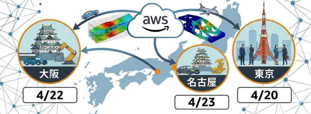 自動車・製造業を中心にCAEワークロードを実行されているお客様向けに、本年2月(東京リージョンは3月)に一般提供開始したHpc8aインスタンスをはじめとしたAWSの最新ソリューション、並びにその基盤となるアーキテクチャを提供するAMD様、業界内で強力なリーダーシップを有するSIパートナー様や主要なアプリケーションベンダーの皆様から最新情報をお届けする集中イベントを、4月20日週に東京・大阪・名古屋 3か所のロードショーの形で実施いたします。AWSでグローバルにCAEワークロード責任者を務める Sandeep Sovani も来場します。是非お近くの会場にてご参加ください。