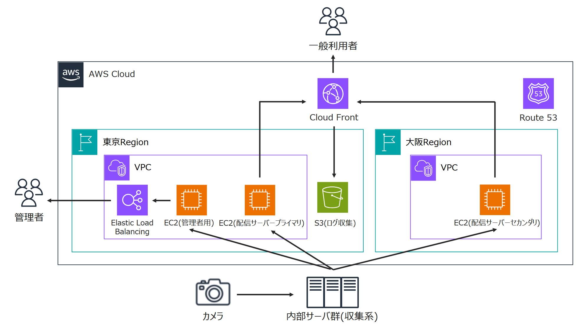 特筆すべき点として、東京リージョンと大阪リージョンの両方に同一の環境を構築し、マルチリージョン構成を採用しています。