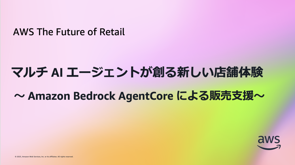 店舗での新しい顧客体験として、Bedrock AgentCore を用いたAIエージェントが組み込まれた店舗でのパーソナライズ接客や業務効率化を実現するAWSの最新ソリューションをご紹介します。