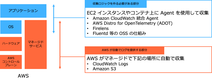 EC2 の OS ログや、開発したアプリケーション内部のログなどは、デフォルトでは自動収集されません。