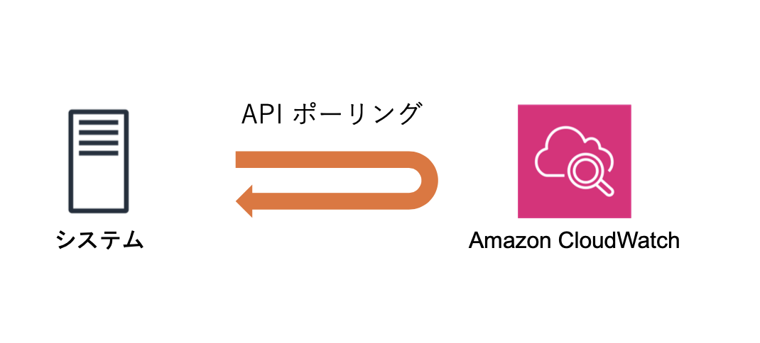 CloudWatch API を定期的にポーリングしてメトリクスデータを取得する方法です。 GetMetricData API または GetMetricStatistics API を使用し、AWS CLI、AWS SDK、または直接 API 呼び出しで実装できます。データの出力形式は JSON です。