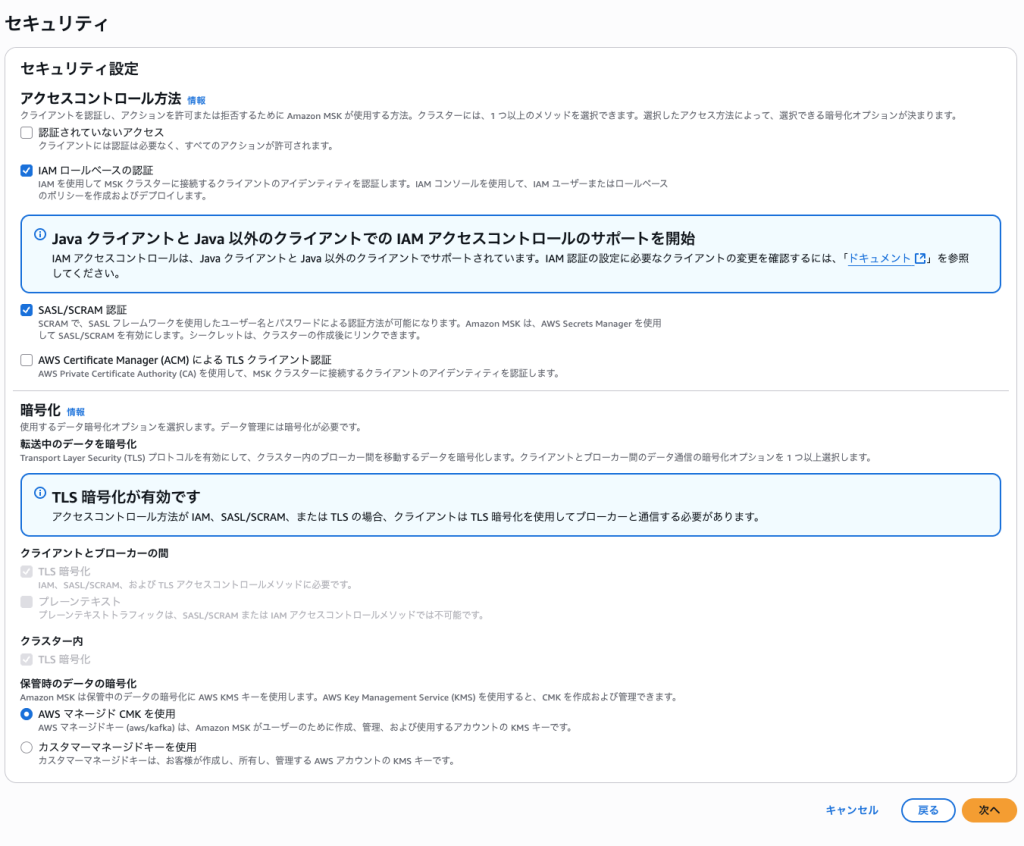 - Apply Engine との接続はユーザー名とパスワードを用いるため、SASL/SCRAM 認証を有効にする。