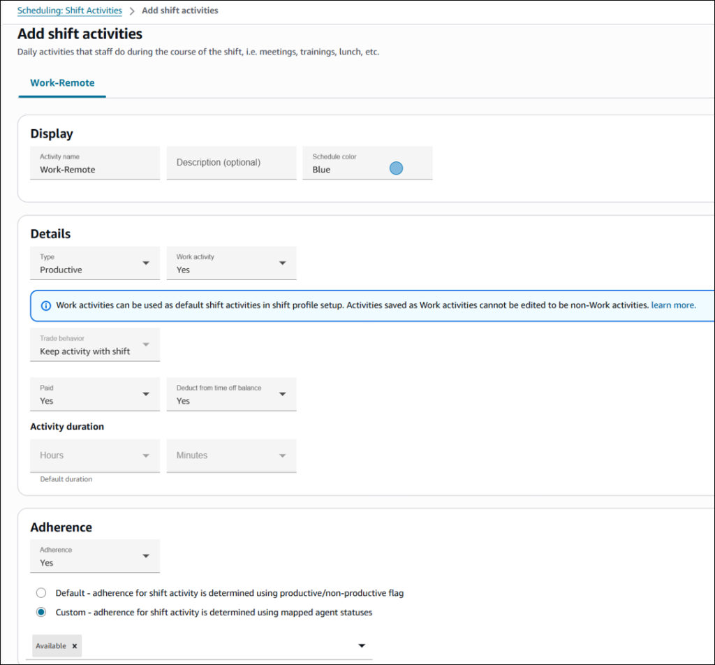 - Amazon Connect now supports custom work labels for agent schedules