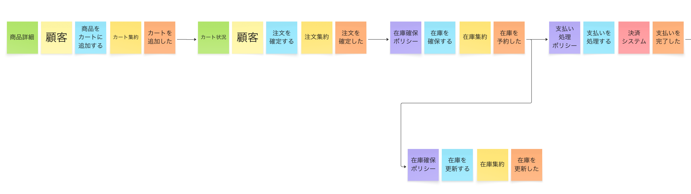 - オレンジ色の付箋(イベント):システム内で発生した事実