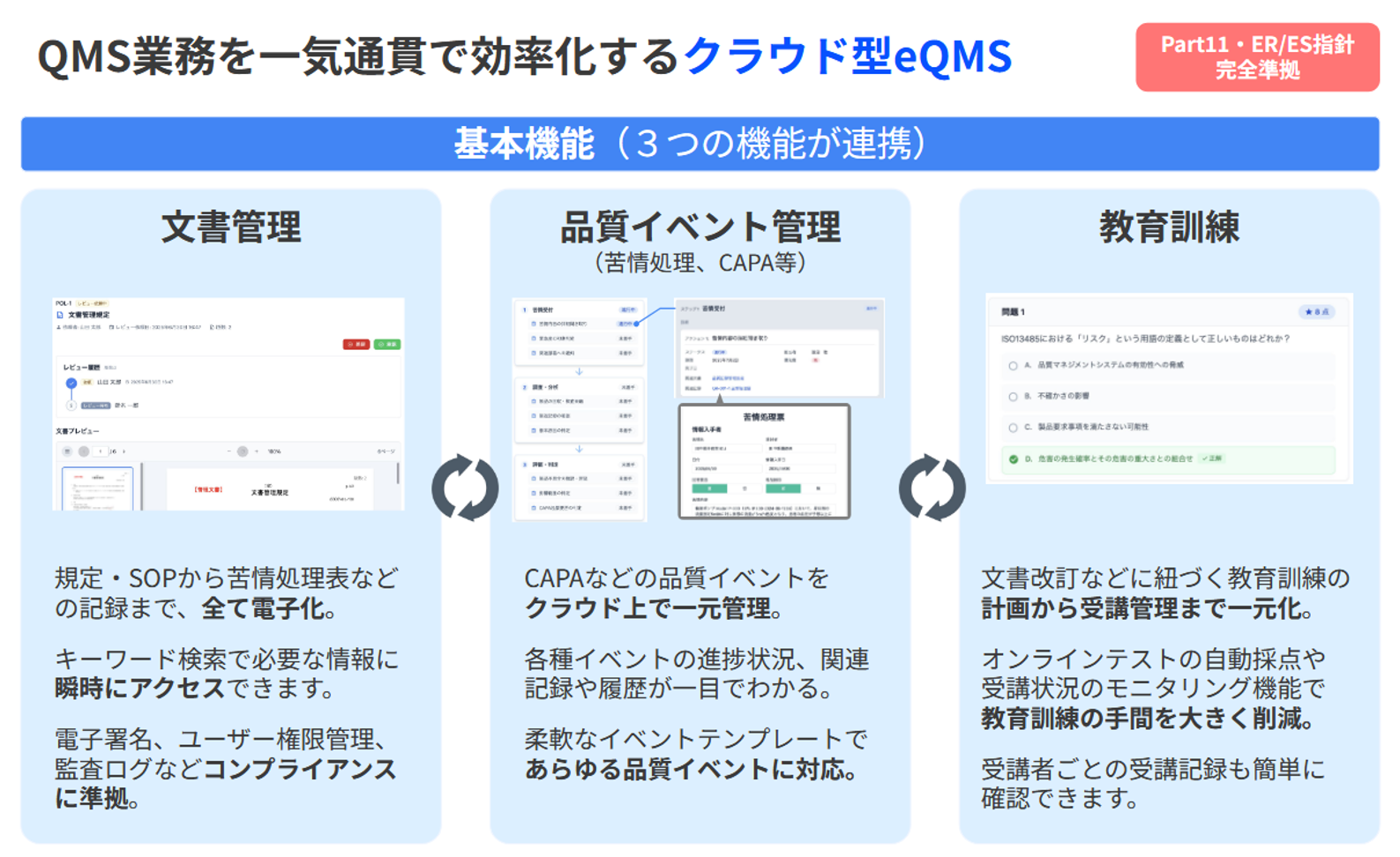 医療機器メーカーの株式会社 Berry 様は、自社での経験をもとに、品質管理業務を効率化するクラウド型 eQMS(電子品質管理システム)「QMSmart」を提供しています。QMSmart は、QMS 活動に必須とされる文書管理、品質イベント管理、教育訓練の機能を一気通貫で提供し、医療機器メーカーの品質管理業務を支援しています。