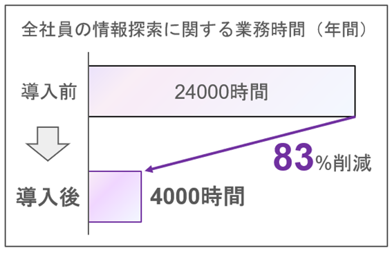 (※フェルミ推定条件 : 対象人数400人、年間稼働日数240日、情報探索の頻度を1日5回とした場合。導入前の情報探索時間3分/回、導入後の情報探索時間30秒/回にて試算。)