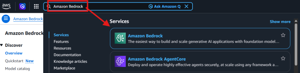 はじめに、AWS Console にログインし Amazon Bedrock のサービスにアクセスしてください。