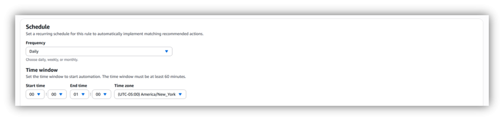 自動化の動作に慣れ、期待される結果を確認できたら、ルールの対象をステージング環境に、そして最終的に本番環境のワークロードへと徐々に拡大してください。また、日次の自動化に移行する前に、まずは週次または月次のスケジュールから始めることもできます。このアプローチにより、条件を微調整しながら運用に関する確信を深めることができ、フリート全体に展開する際には、自動化ルールが十分にテストされ、組織のビジネス要件に沿った状態になります。