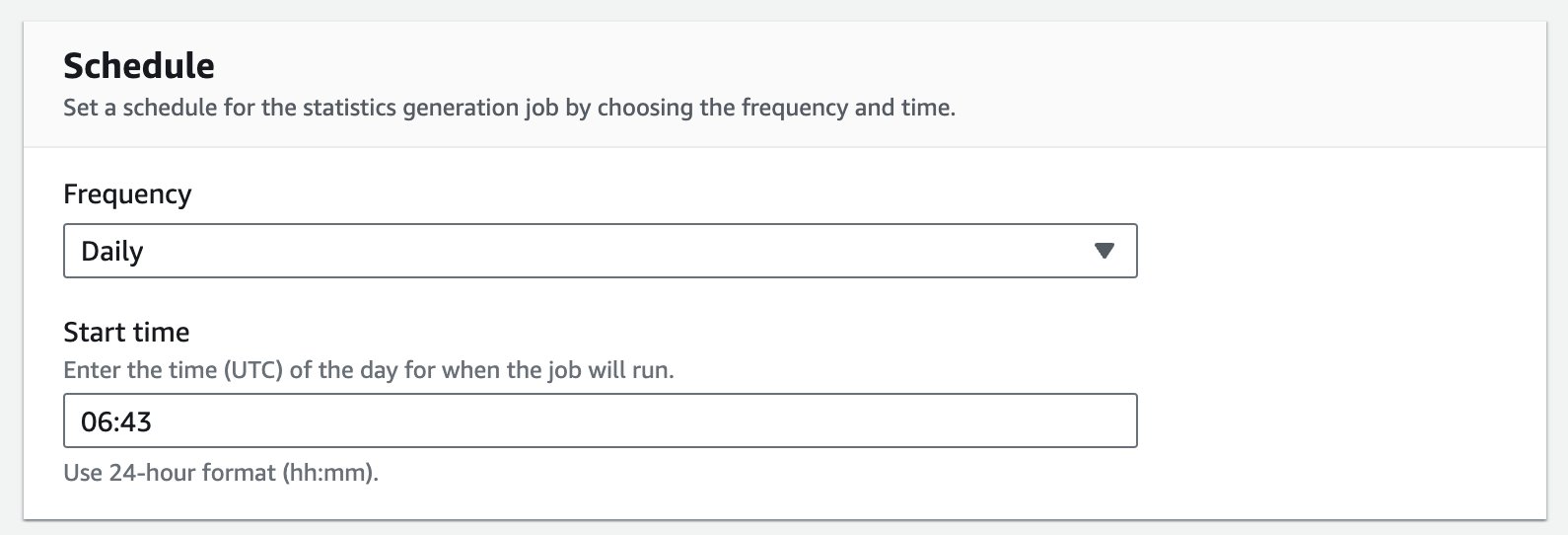AWS CLI を使用してカラム統計生成スケジュールを作成することもできます: