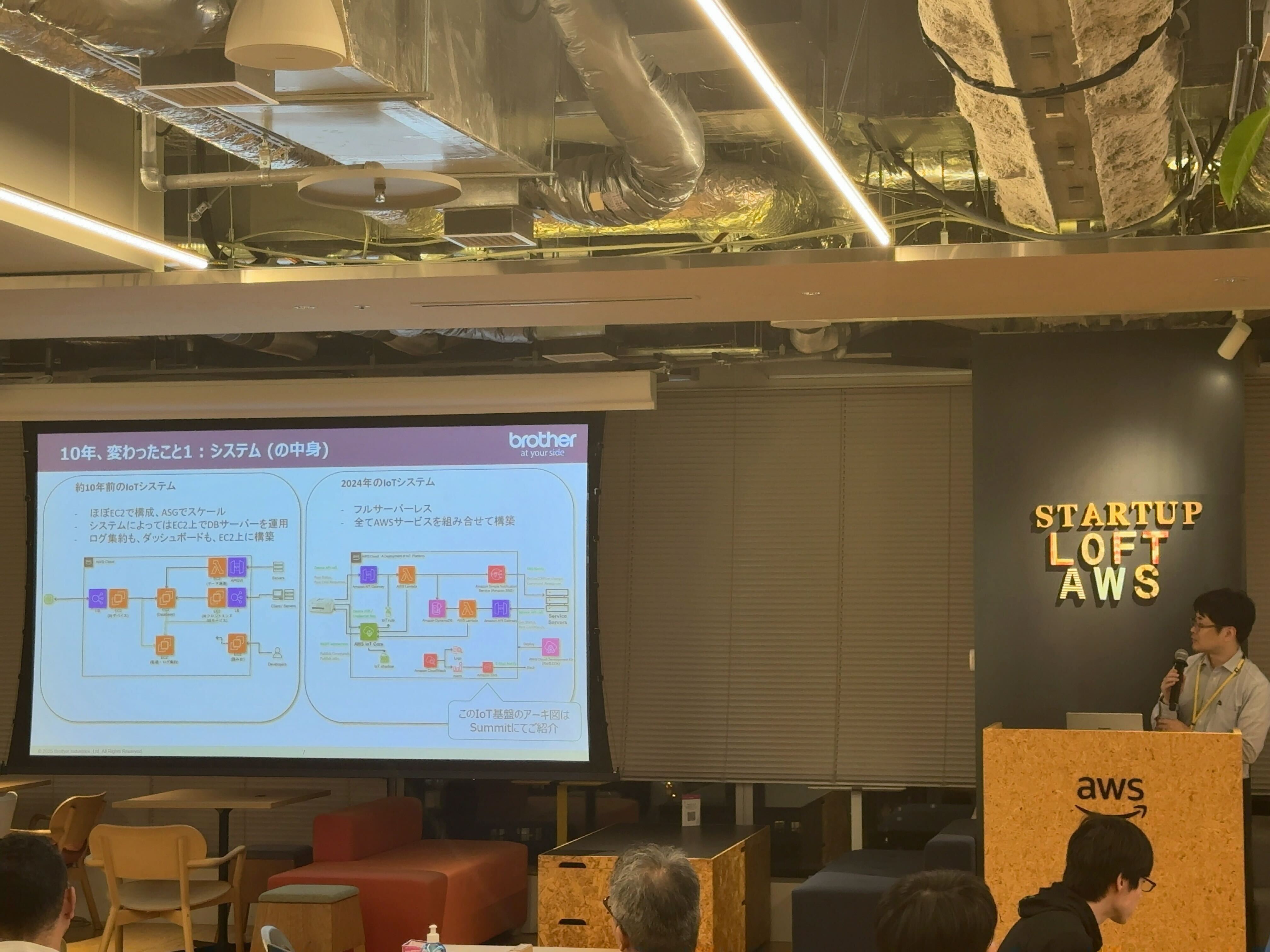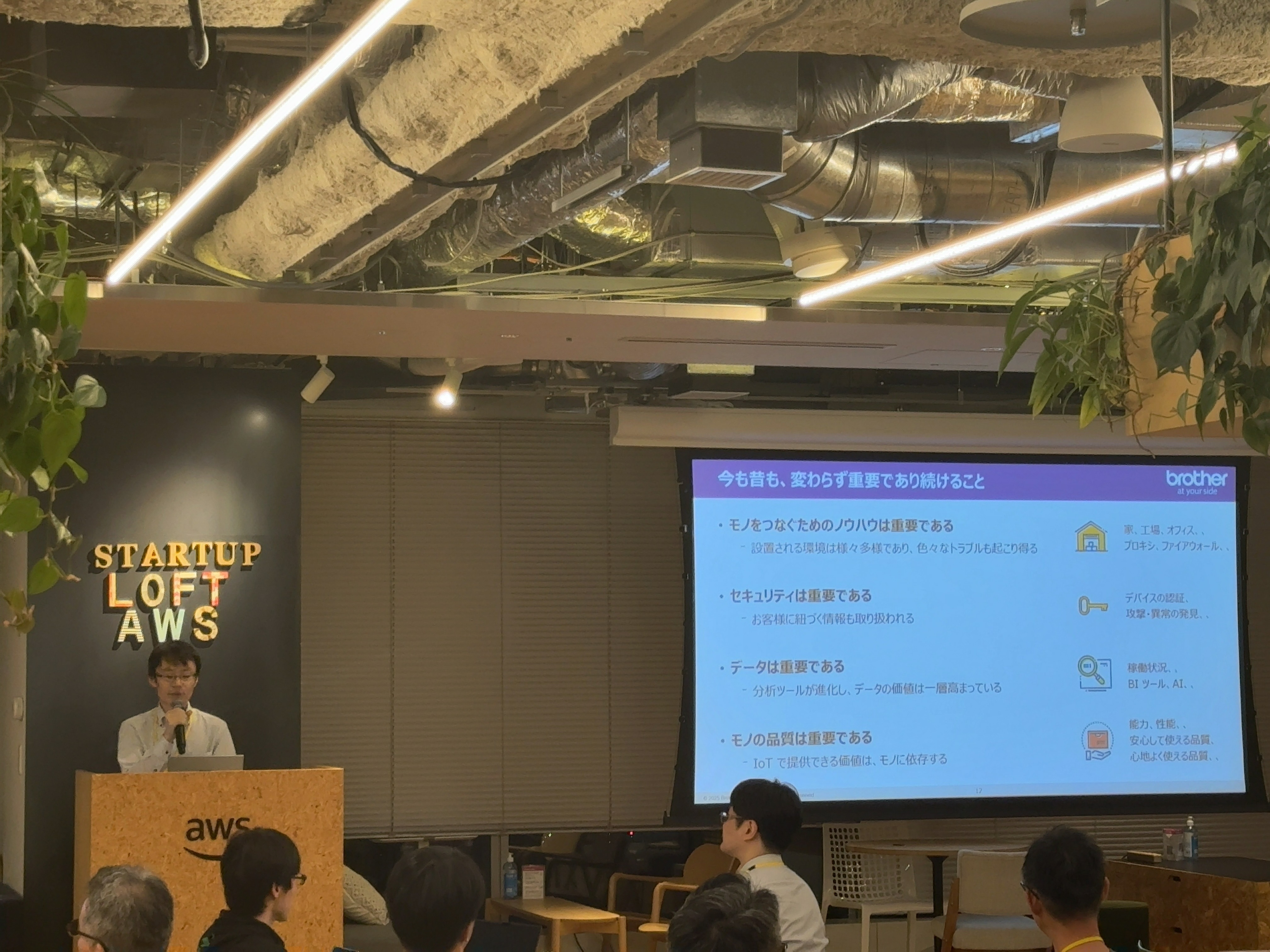 IoT@Loft は AWS が年に数回開催している、IoT 関連ビジネスで開発を担当するデベロッパーのためのイベントです。「総合格闘技」とも呼ばれるほど、幅広い分野の技術が求められる IoT において、参加者同士の情報共有と意見交換の場を提供することで、参加者の事業や製品開発の成功につながるきっかけを作ることを目指しています。 過去の開催ブログの一覧は、リンク先にあります。