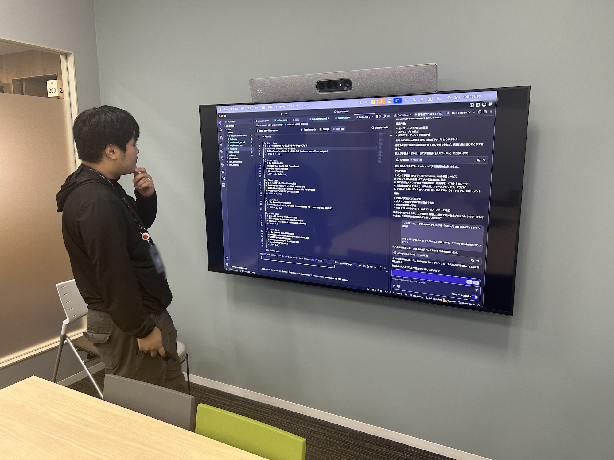 開発の後半では、テストとデバッグのフェーズに入りました。Kiro は実装コードだけでなく、テストコードも自動生成してくれます。しかし、テストの品質を担保するためには、人間によるレビューが欠かせません。今回もペアでの行動をおこなっています。生成されたテストケースを 2 人で画面を見ながらレビューしました。「このパターンのテストが足りないのではないか」「この異常系のテストは必要だ」といった議論を重ね、テストの質を高めていきました。