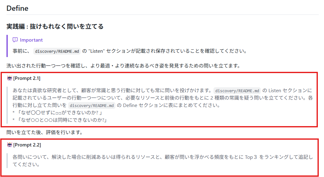 このような「言語化」により生成 AI へ正確な指示を与えることができ、ファシリテーションの精度を高めています。下記の「当日のガイド」に従い進めていけば、手早くかつ再現性の高いプロダクト開発プロセスを実践できるようになっています。